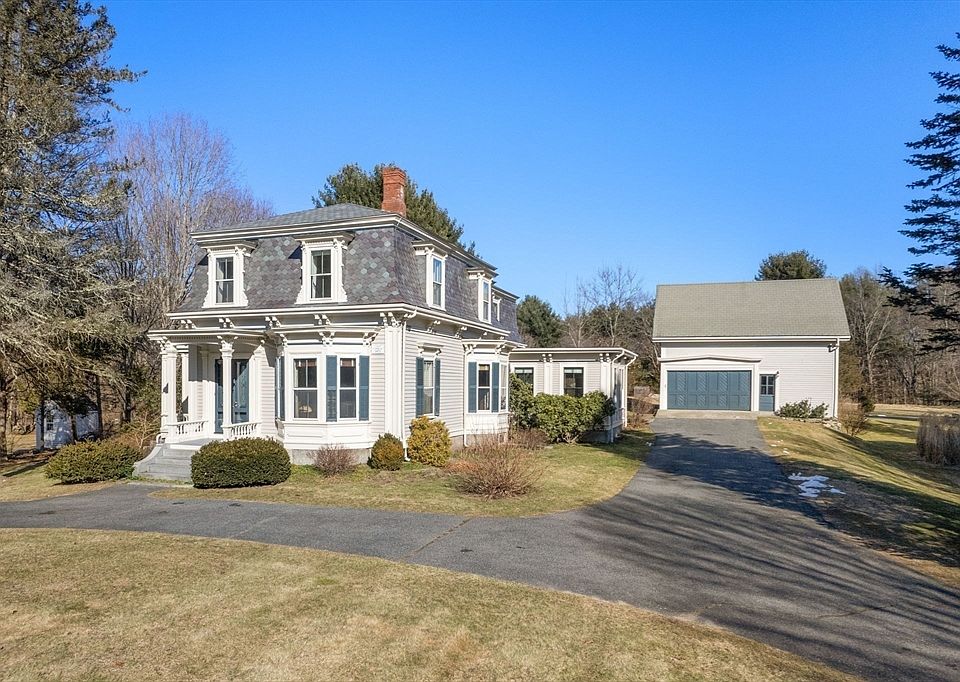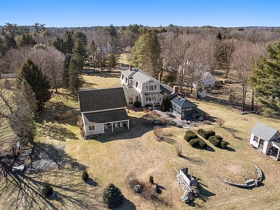 Presenting the historic Charles Holbrook House (c1850), Sherborn's finest example of Second Empire/Mansard style: Sited well off the road on 6.2 incredible acres, this much admired 4 BD, 3 BA, 4600+ sqft house has been EXPANDED, RESTORED & RENOVATED over the years to tastefully combine the charm of yesterday w/all of today's modern amenities. The interior is not only cozy & charming but elegant, functional & move-in ready! Highlights include: large chef's kitchen w/professional grade appliances, quartz counters & huge walk-in pantry; oversized windows, 10' ceilings, high-end finishes, hand-carved millwork & hardwood flooring throughout; 3 fireplaces;1st floor BR & full BA; updated systems; all glass & mahogany English conservatory w/fireplace opens to blue stone patio & overlooks expansive backyard w/stonewalls, ancient apple/pear trees & blueberry bushes; detached BARN w/2 car garage, workshop & 2nd fl rec room; One-of-a-kind home, top schools...w/too many features to list, COME SEE!