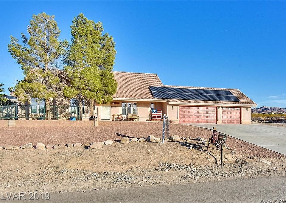 This incredible Henderson custom is a true 2 family home. The updated basement includes a large great room with full kitchen, 2 bedrooms, den, full bath, laundry even a separate entrance. The main floor features a open floor plan, 3 bedrooms, 3 baths, 3 car garage, covered patio, custom tile flooring, solar, high ceilings, two tone paint and much more. All this sits on a large lot with almost an acre of land, out building and room for everything!