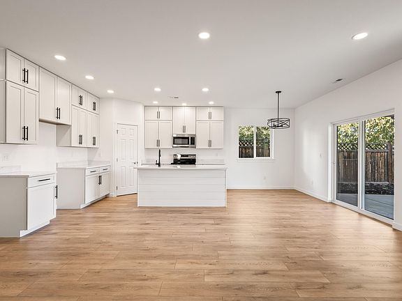 Step inside this beautifully designed 3-bed, 2-bath custom home offering 1,496 sq ft of thoughtful craftsmanship and modern comfort. Featuring 9 ft ceilings, graceful arch details throughout, this home blends charm with function at every turn. The open-concept layout highlights luxury vinyl plank flooring, skylights with solar shades, and a stunning kitchen with floor-to-ceiling cabinetry, quartz counters, soft-close drawers, and a large island perfect for gatherings. The spacious primary suite offers abundant storage and a sliding glass door leading to a huge covered back porch - ideal for relaxing or entertaining. Enjoy the convenience of a dedicated laundry room with upper cabinets and a utility sink, plus an oversized 8-ft garage door, side man door, and alley access. With central A/C, forced-air heating, and meticulous attention to detail, this