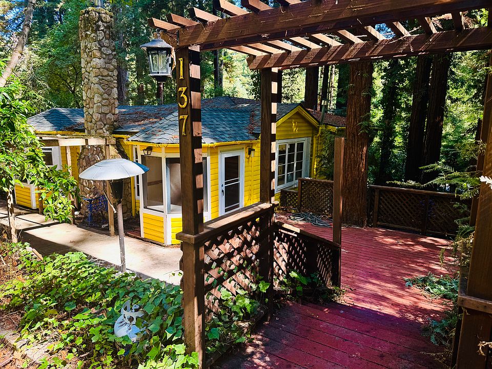 Surrounded by towering redwoodsCabin-style architectureLarge parking lotRemodeled downstairs bedroomsRemodeled bathroomSpacious deckLarge master bedroom