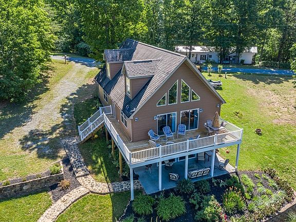 Beautiful home that shows like a model, and includes most furnishings!!Located in one of the most desirable areas of the lake. Gorgeous wide deep water cove, amazing views and so close to the mountain and dam! Open floor plan with wall of windows in 2 story great room. Entry has open floor plan with Master suite and guest bedroom, & laundry. Leads out to over sized deck. Upper level has lounging area, bedroom & full bath, lower level boasts additional room used as bedroom, family room, full bath & ample storage, to walk out patio. Convenient to area restaurants and marinas by land and water. Short term rentals are allowed, tho this home has not been rented and it shows! Community boat launch with day docks, picnic area with the most incredible views at Smith Mountain Lake.