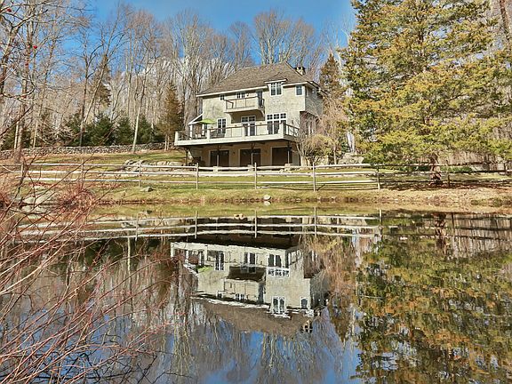 Long term rental available! Premium quality spacious custom colonial set back on picturesque property. Tremendous attention to detail in every aspect of the construction and layout. Located on a sought after country road, this home has beautiful high end finishes. There is wide plank Brazilian cherry floors as well as extensive custom designed millwork throughout the house. A double height mahogany ceiling graces the large entry foyer. A chefs kitchen opens to a great room with stone fireplace overlooking the property. Oversized windows provide abundant natural light. The master suite features a fireplace, 2 walk in closets and luxury bath. There are 3 additional en suite bedrooms and convenient upstairs laundry room completing the second floor. The finished lower level with extensive built ins and full bath provides perfect bonus space. Outside a large mahogany deck overlooks beautiful private property with pond and ample yard.