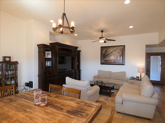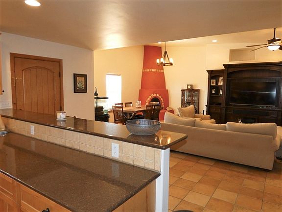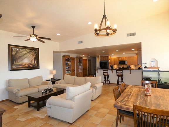 Beautiful southwest home custom built in 2007 situated on 11.6 acres offering tile flooring & carpet, open floor plan, and spacious bedrooms! Master bath has tiled walk in shower, garden tub, and his/her vanities. A large Jack and Jill bath w/shared tub/commode offers private vanities & closets in guest rooms .Granite counters, custom cabinent's, large breakfast bar that serves 4, Kiva fireplace, chicken coup, fenced garden, large workshop building are just to name a few of the amenities.