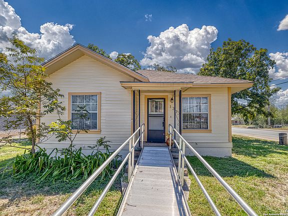 Discover the charm of an older home with modern updates in this well-maintained 2 bedroom, 1 bath property situated on a spacious corner lot. This home features tall ceilings, a comfortable living room, and a cozy kitchen that creates a warm and inviting atmosphere. Recent improvements include the home being professionally raised and leveled with a 2-year warranty, termite treatment and remediation with a 2-year warranty, a new roof with a 2-year warranty, fresh exterior paint, new insulation, new flooring in the kitchen and bathroom, updated bathroom, and the removal of paneling with drywall added throughout for a fresh, clean finish. Additional highlights include a detached 2-car garage and thoughtful care that shows throughout the property. Located just one block from downtown Uvalde and just a hop, skip, and jump away from the public library, this home is also within walking distance to several restaurants. Move-in ready and full of character, this home is prepared to welcome its next owners!
