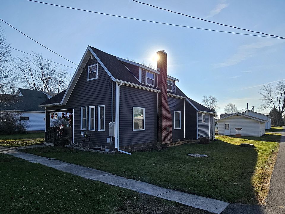 This small-town property boasts a 4 bedroom, 1 bath layout on a spacious lot, featuring numerous upgrades, including new windows, siding and roof. Highlights include a whitewashed brick fireplace and a large detached 2 car garage with a workshop area. Ideal for those seeking a cozy yet improved living space.