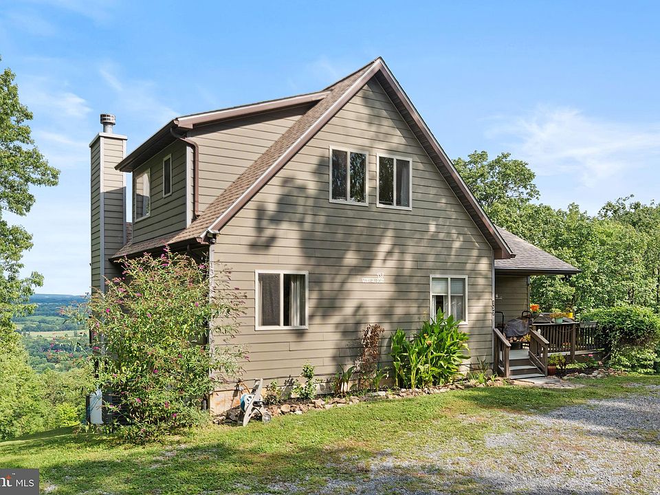 Perched on 1.62 acres with panoramic mountain views, this breathtaking chalet offers the perfect blend of modern comfort and rustic charm. Surrounded by fresh mountain air, the home is thoughtfully finished on all three levels, including an enchanting loft bedroom suite. Step inside and be welcomed by soaring two-story windows, a cozy fireplace, and gleaming hardwood floors that create a warm and inviting atmosphere. The spacious kitchen features granite countertops, stainless steel appliances, a breakfast bar with seating, and a picture window over the sink—all overlooking the open dining and living areas, perfect for gatherings. The main level offers two convenient bedrooms and a beautifully updated hall bath with stylish vanity and tilework. Downstairs, the lower level impresses with custom cabinetry, walls of windows framing gorgeous views, and a remodeled full bath—making it an ideal space for entertaining or relaxing. Whether as a full-time residence or a serene mountain getaway, this home delivers modern amenities while offering the feeling of being a world away. A rare opportunity to own a mountain retreat that truly has it all! Other upgrades include: washer & dryer, refrigerator, AquaScience filter system (2020), HVAC system, well water pump (2012), water heater (2012), window tint (2025), and well pressure tank (2012).