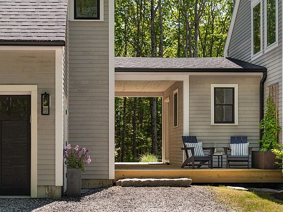 Ideally located along the picturesque Wildes District Road in Kennebunkport—perfectly positioned between the vibrant energy of Dock Square and the historic charm of Cape Porpoise—this exceptional home offers a rare combination of privacy, natural beauty, and coastal access. Set on 1 private acre, the property is surrounded by serene woodlands, creating a peaceful retreat with an expansive rear deck and a new stone firepit overlooking a lovely stone wall and the forest beyond, ideal for both quiet evenings and hosting lively gatherings. Inside, the bright, four-bedroom home offers a first-floor primary and living room that impresses with its soaring ceilings, abundant natural light, and a striking wood-burning fireplace that adds warmth and architectural character. Above the garage is a bright and airy bonus room that is perfect for a home office, creative studio, or wellness space. The room features a high ceiling, stylish ¾ bath, beautiful light fixtures, and large sliding glass doors that open to a private deck. Just a ten-minute stroll away, enjoy deeded ocean access at Lands End—where swimming, paddleboarding, and island boating adventures await.