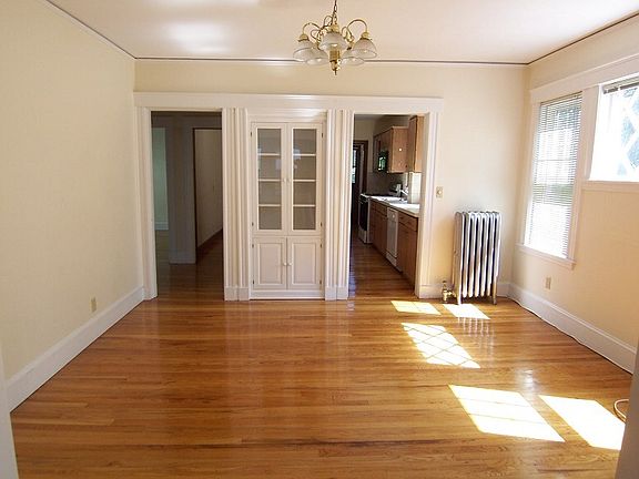 This lovely two bedroom apartment is on the first floor of a two family near public transportation and located in a nice neighborhood in the Brackett/Bishop elementary buffer zone. Available NOW. There are hardwood floors throughout and the unit is lead compliant. The entry foyer leads to the formal living room, and the dining room has a built in hutch. The eat in kitchen has hardwood floors and lots of cabinets. The kitchen is applianced with a refrigerator, gas stove, dishwasher and microwave. There is access to a rear open porch and shared yard from the kitchen. This apartment has two bedrooms and one full bath and is heated by gas. A washer/dryer and storage are provided in the basement. Off street parking is provided for 2 cars in the driveway. Walk to the 77/79 bus lines, Stop & Shop grocery and restaurants. No pets; nonsmokers only. Year lease; landlord collects first and security deposit; NO FEE. Year lease; landlord collects first and security deposit; NO AGENCY FEE.
