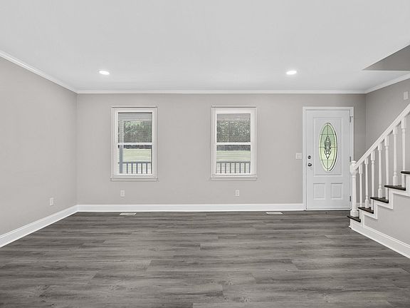 COMPLETELY RENOVATED! This 3 bedroom, 2.5 bath home is nestled on a tranquil private lot spanning approximately one half acre, offering serene surroundings and ample space for relaxation and outdoor activities. As you approach the home, you're greeted by a welcoming wrap-around porch. The exterior boasts a modern yet inviting facade, with fresh paint and updated siding, presenting a picture-perfect curb appeal. Upon entering the home, you're immediately struck by the seamless blend of modern design and comfortable living spaces. The open-concept layout creates an airy atmosphere, perfect for both entertaining and everyday living. The living area features new flooring, flowing effortlessly throughout the space. Large windows invite natural light to flood the room, enhancing the bright and welcoming ambiance. The kitchen is a chef's dream, showcasing sleek new stainless appliances, including a stove, refrigerator, dishwasher. Crisp white cabinetry provides ample storage, complemented by new countertops. A spacious breakfast bar offers additional seating and serves as the centerpiece for casual dining and socializing. Adjacent to the kitchen, the dining area offers a cozy spot for family meals or intimate gatherings, with views of the scenic backyard through sliding glass doors. The master bedroom is a true sanctuary, featuring a walk-in closet, and an en-suite bathroom with modern fixtures, a sleek double vanity, and a luxurious tile shower/tub, perfect for unwinding after a long day. Two additional bedrooms offer comfortable accommodations for family members or guests, each with ample closet space and easy access to the beautifully appointed guest bathroom, complete with contemporary finishes and a refreshing tile shower/tub combo. Outside, the fenced backyard provides plenty of space for outdoor enjoyment, whether it's hosting barbecues on the deck, playing with pets or children, or simply relaxing in the peaceful surroundings. To top it all off, this home has a new roof, water heater, countertops, hardwood stairs, deck, recessed lighting, toilets, sinks and light switches while updated fixtures and lighting throughout add the perfect finishing touch to this stunning remodel. Hurry and schedule your showing today because this amazing home won't last long!