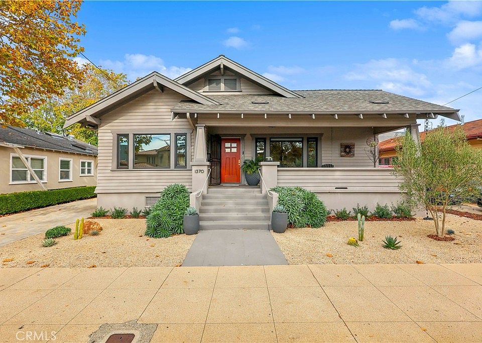 Meticulously renovated 1922 Craftsman bungalow that beautifully blends original character with thoughtful modern upgrades. Fresh interior and exterior paint, all new sound-resistant Anlin windows, original refinished hardwood flooring, original interior molding, and new sound-resistant Anlin French doors opening to two custom-designed redwood decks all contribute to its timeless appeal. Originally built by local craftsman Harry Lyman, the home showcases vintage details paired with contemporary comfort. An inviting front porch leads into the light-filled living room, which flows seamlessly to the dining room with a built-in buffet and French doors that open to a side deck and private office. The updated kitchen features new cabinetry, new Bosch stainless steel appliances, and a cozy breakfast nook, with direct access to the laundry room—complete with a Miele washer and dryer—and a walk-in pantry that opens to the back patio. Architectural drawings are available that reimagine the pantry area as a second bath connecting to the primary bedroom, offering a great path for future expansion. The home includes three spacious bedrooms and a beautifully updated bath, creating a space that feels both warm and refined. Modern updates include a new HVAC system, all-new electrical, copper plumbing, on-demand water heater, recessed lighting, large closets with new wardrobe systems, a new irrigation system, and a newly installed paver driveway that adds a fresh and welcoming touch. The expansive backyard is thoughtfully landscaped with mature trees, and a pergola creates a perfect outdoor retreat. The garage has been converted into a versatile hobby or workshop space, complete with an attached additional room ideal for a gym or studio, adding another layer of flexibility to the property. All of this in a prime location just steps away from restaurants, shops, and the vibrant energy of downtown San Luis Obispo.