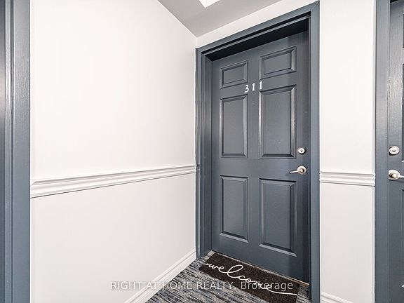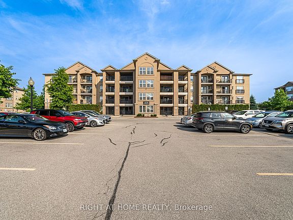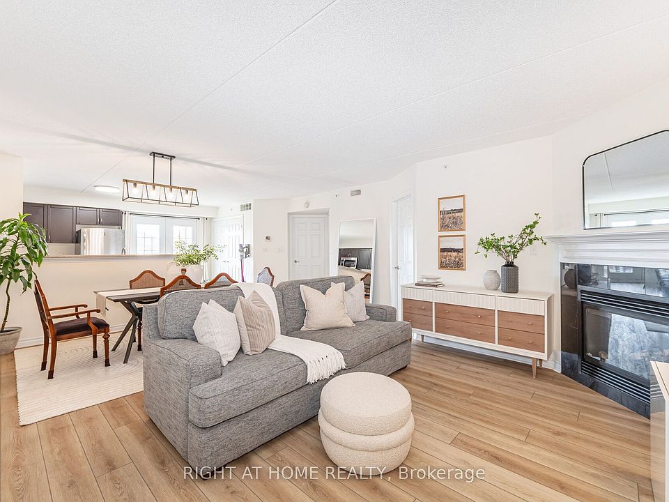 Bright, beautifully designed corner unit, thanks to the wraparound windows and south-facing views. Thoughtfully laid out and full of charm, this suite is nestled in a well-kept building with a welcoming, community feel. With two full washrooms, two bedrooms and a smart, open layout, the space is perfect for families, guests, or anyone who appreciates a little extra room. The oversized primary bedroom offers a private ensuite and generous windows, while the open-concept living and dining area, which includes a cozy gas fireplace, is made for both quiet nights in and easy entertaining. Off the kitchen, step into your private balcony and take in peaceful views of Sinclair Park. The building offers great extras as well, including a clubhouse with a gym and stylish party room. Commuting is a breeze with quick access to the highway and GO Transit nearby. Where comfort and style meets opportunity. Make this home yours! Includes one underground parking spot, a storage locker, and an additional surface parking space is available. Please see multimedia tour and floor plan.