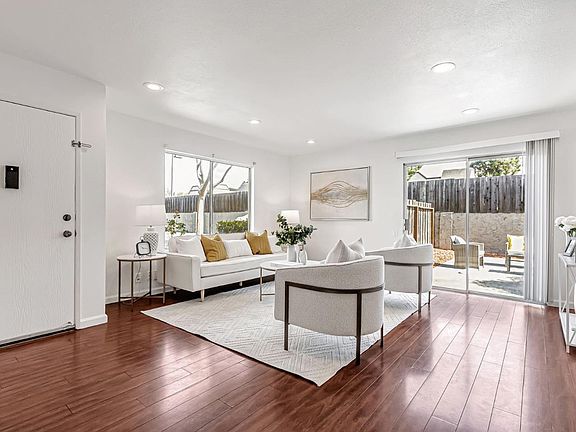 Single level ground end unit. No one above you or below you and 3 sides and part of the 4th side of the home are not shared with other units. All that plus its own backyard, it almost feels like a single family home! It is tucked away in the back, further away from the street giving more privacy. There are so many special perks in this home - so rare to have such a SPACIOUS BACKYARD for a condo that is fully fenced and private, long kitchen with ample quartz counter space to prep meals and cherry wood cabinets/soft close drawers, the primary bedroom is extra large, and being an end unit there is so much natural light streaming in from the many windows and a slider. Kitchen also features stainless steel - appliances (including a dishwasher), faucet, and sink, tile backsplash. Bathroom has granite countertop. Laminate and tile flooring. Recessed lights. New interior paint. 1 car garage and 1 permit for a community parking space. Lots of greenery and shade trees. Santee School and playground are a few minutes walk. Walking distance to shopping centers. Close to downtown San Jose (major transit center), grocery stores, restaurants, parks like Mc Laughlin Park, Happy Hollow Park & Zoo and Japanese Friendship Garden, 101, 280, 680.
