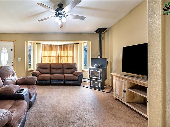 Perfectly situated between Fairbanks and North Pole, this inviting 3-beroom, 2-bath home offers a little bit of everything- space, comfort and convenience. The nearly 1,400sqft layout includes a master bedroom, an open kitchen and living area and an attached 2 car garage. A pellet stove situated in the living room adds warmth and charm. Sitting on just under an acre, there's plenty of room for gardening, entertaining, or simply enjoying quiet Alaskan evenings.