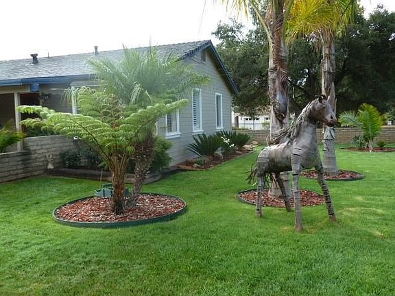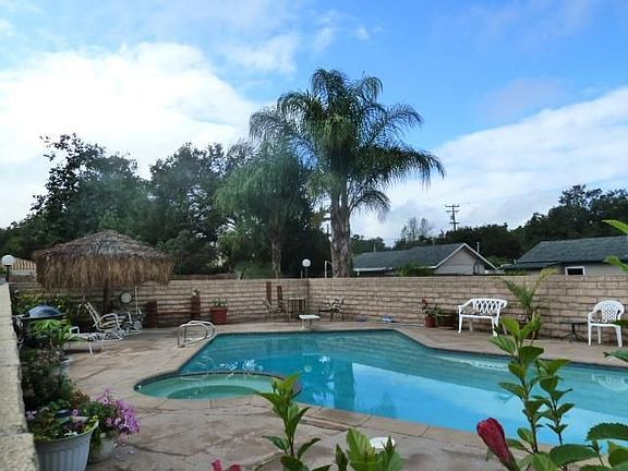Country style living with ranch style home. Pride of ownerships starts from the time you enter through the gates, family orchard lines the asphalt driveway, with citrus trees, plums, apricot,tanergines, etc. The back of the property is paved for all types of RV's, plenty of room for parking, or basket ball game. The 2 car garage with bathroom, and attached laundry room is only detached from the home by a garden patio area and entertainment. The outdoor patio area with built in gas Bar-be-cue and just across from the separate pool area which offers solar heating. The home offers a warm environment with formal living room, family room with wood vaulted ceilings, fireplace, and large picture windows, the kitchen with casual eating area, custom wood cabinet with glass fronts.Granite counters, and bay window. The master suite and master bath is separate from the other two bedrooms and bath. This home has a great feeling for family gatherings or entertaining the neighborhood.