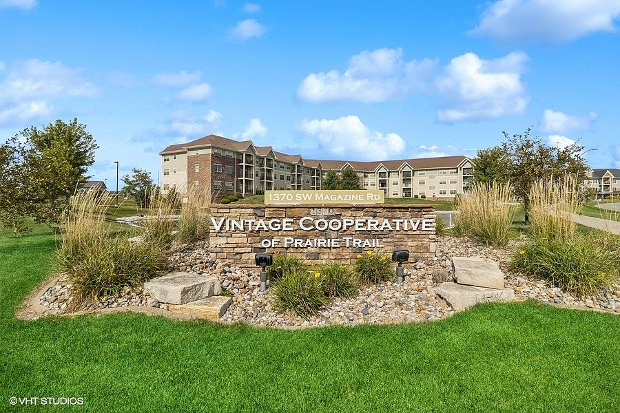 Great location within walking distance to all that Prairie Trail has to offer. Vintage Cooperative of Ankeny is an Independent Senior Living Community for those of you 55 plus. This 2nd floor unit boasts of a great room plan, the Chestnut plan with 1,229 sq. ft., including a center island breakfast bar, a dining area and large pantry with lots of shelves and storage space. The Master bedroom has a large walk-in closet with large full bath, the guest room is suited as a bedroom or an office, lots of light and a large closet suited for clothing, office supplies or whatever your choice of its use. The 3/4 bath is right off the great room and near the 2nd bedroom. This unit has a parking stall in the lower level. Storage unit over parking spot. The lower level of this Coop has a workshop that may be used by all residents. Included is a car wash, elevator, as well as stairs, a workout room, library, guest rooms that may be reserved for your guests for a modest fee, dining room, patio and individual unit decks.