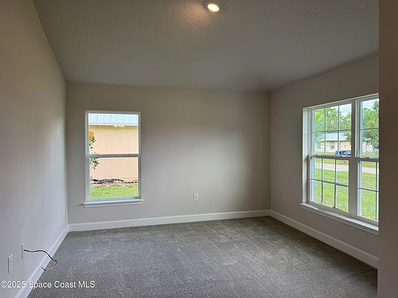 Bright and open, this 4 bedroom, 3 bath home welcomes you with soaring 10' ceilings, abundant windows, and plenty of natural Florida light. A spacious living and dining area anchors the home, with a versatile flex room off the foyer—perfect for a sitting room, game room, or office. At the heart of it all, the kitchen flows easily into the living spaces, ideal for entertaining or everyday gatherings. The split floorplan offers privacy: the owner's suite features dual closets and a spa-like bath with soaking tub, shower, dual vanities, and private water closet. Two bedrooms share a bath with dual sinks, while a private bedroom and bath create a comfortable guest suite. A covered lanai extends the living space outdoors, accessible from the living room, owner's suite, and secondary bath. Thoughtful finishes include ceiling fans, lever-handle hardware, 5'' baseboards, seeded glass fixtures, and stainless appliance