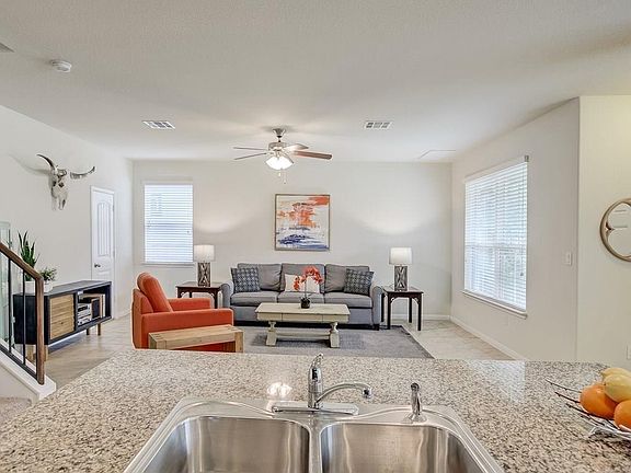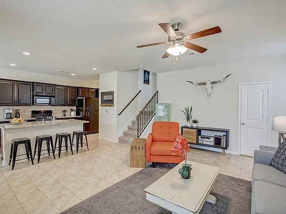 - Breakfast Bar, Granite Counters, High Ceilings, Interior Steps, Multiple Living Areas, Recessed Lighting, Walk-In Closet(s)