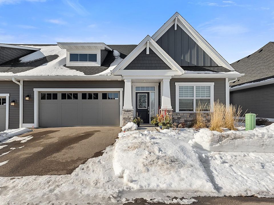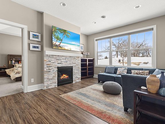 Experience the ultimate in effortless luxury with this like-new construction twin home, where true single-level living means never navigating a single stair again. Designed with both style and accessibility in mind, the home features soaring 9' ceilings, extra-wide 36" doorways, and an expansive 48" entry hallway that flows seamlessly into an inviting, light-filled open floor plan. While the home boasts high-end designer finishes—including a cozy stack stone surround gas fireplace, custom white cabinetry, granite countertops, and premium stainless steel appliances—the interior remains a neutral appeal color palette awaiting your personal decor touch. Beyond the oversized garage and the walls of windows, you’ll find a private rear patio that opens up to the serene beauty of mature trees and a neighboring city park. Complete with resort-style community amenities like a sparkling pool, modern fitness center, and a social clubhouse, this home offers a sophisticated lifestyle where every detail is designed for comfort and ease.