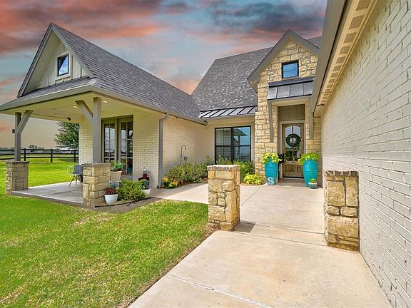Country living at its finest, this Yukon home offers thoughtful design and generous space across 3 bedrooms, 3.5 baths, and a dedicated study. An expansive yet inviting entrance leads into a living room with soaring ceilings and hardwood floors that ground the main gathering areas. The kitchen anchors the home with abundant island seating and a built-in refrigerator, while each bedroom offers a full bath and walk-in closet for privacy. One guest suite includes a private covered entry and patio at the front of the house.