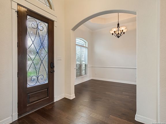 Nestled among mature trees on an extra large cul-de-sac elevated lot, this one story full brick home has more than 2,200 sqft of beautiful upgrades and meticulously cared for interior. Upon entering, you'll be immediately struck by the high ceilings, elegant molding and decorative lighting that create a warm, serene and inviting atmosphere. The spacious living room features a high-end speaker surround sound system that's perfect for entertaining guests or enjoying a quiet peaceful night in. The real hardwood floors throughout the home exude sophistication and class, while the limestone floors in the bathrooms provide a spa-like feel. The kitchen is a chef's delight, complete with a new LG fridge with a touch screen and an LG washer/dryer that convey with the home. Whether you're preparing a gourmet meal or simply enjoying a cup of coffee, you'll appreciate the quality and convenience of these top-of-the-line appliances. The primary suite features an ensuite bathroom with upgraded fixtures and finishes, as well as a large closet that provides ample storage space. Other notable upgrades include a new and very quiet Carrier AC unit, new pressure pump, new water heater as well as landscaping with replacement of trees in front and back of the property. The home even includes a small built in pet door for your dog or cat to easily enjoy the expansive yard. The home's exterior is complete with a cedar planked outdoor patio ceiling that includes decorative lighting and a ceiling fan for Texas Summers. While the yard provides an extended new fence that boasts both privacy and security including a gate for easy access to the lower road making evening walks a breeze to enjoy the areas superior views. With fresh new paint and flooring throughout, this home is move-in ready and waiting for you to make it your own. Don't miss out on this incredible opportunity to own a truly luxurious home in a highly sought-after location. Click the Virtual Tour link to view the 3D walkthrough.