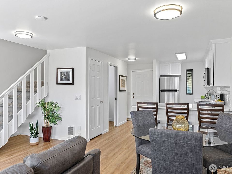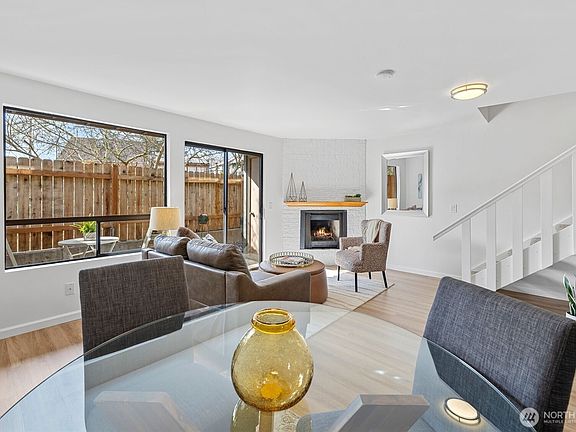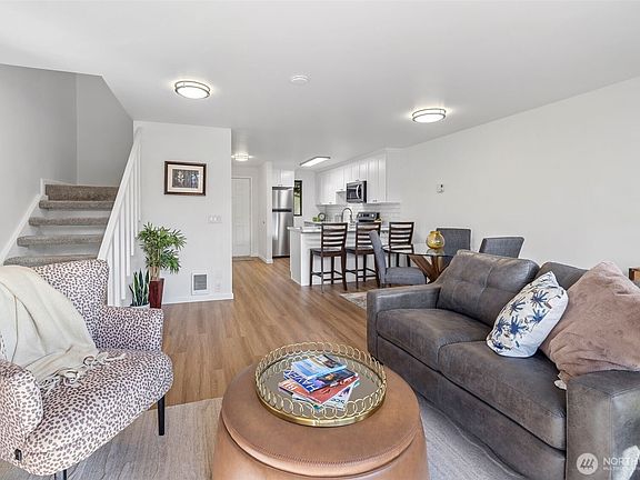 Fantastic, fully remodeled, townhome-style condo with two parking spaces in front of the unit. Located in a gated community. The open concept includes a spacious living room with a fireplace and a dining room. Patio with a south exposure-perfect place to have a barbecue. The kitchen has new cabinets, stainless appliances, & beautiful quartz countertops. This unit has been freshly painted, and all new flooring has been installed! Upstairs, you will find the spacious primary bedroom with excellent closet space and another bdrm with walk-in closet. Stellar location close to the airport, freeway access, & Light Rail. Minutes to Southcenter Mall. Newer roof on the building. Copper piping throughout the building. Come quick-this won't last long!