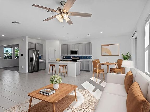 One or more photo(s) has been virtually staged. Welcome to this stunning 5-bedroom, 4-bathroom, 3,126 sq. ft. two-story home located in the highly sought-after South Fork community in Riverview. This spacious, well-maintained home feels like new construction with fresh interior paint throughout and brand-new carpet upstairs. The gourmet kitchen features an oversized island with quartz countertops, modern gray cabinetry, and plenty of space for cooking and entertaining. The first floor offers a convenient bedroom and full bath — perfect for multi-generational living, guests, or a private office — along with a large, open family room filled with natural light. Upstairs you’ll find a generous loft, ideal for a second living space, playroom, or media area, plus four additional bedrooms. Every bedroom has a large walk-in closet, providing incredible storage and flexibility. The South Fork community offers amenities including a swimming pool and playground within walking distance. Enjoy the convenience of being close to hospitals, shopping, dining, and major highways. BONUS: VA assumable loan — ask for details! This is the rare “feels like new” home you’ve been waiting for — don’t miss it!