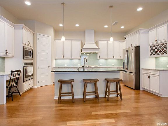 Ready To Entertain & Loaded With Upgrades! Wonderful openness & brightness from the kitchen into the main living/family room. Customized bar area, excellent for entertainment & convenience. Ample storage space & pantry in kitchen. Recessed tray ceilings with inlaid crown molding in main living/family area as well as master bedroom. Gourmet Kitchen with Maple Cabinets, Quartz counters, & stainless appliances. Extremely attractive & durable bamboo wood flooring throughout. Quartz counters in bathrooms. 8' doors throughout. Full Security system, paver driveway, porch and sidewalk, fully landscaped. High quality 2 x 6 framing along with engineered post tension foundation system. Inlaid separate mood lighting behind crown molding in master bedroom. Fully fenced property with gates on each side and in the back for access and view of the beautiful greenspace in the back. Built in wine rack in kitchen. Gas cooktop with separate wall oven. Spacious and light-filled family room. The private backyard patio area has brick pavers and firepit, great for entertaining and relaxation. Fantastic neighborhood amenities include a private community pool, expansive green space, children's playground, and club house. Bright and beautiful home!