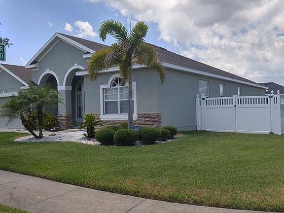 Beautiful 3 bed plus den, 2 bath, 2 car garage home located on an oversized corner lot. Upgraded features include stone accent front elevation, freshly painted exterior, fully fenced back and side yard, gorgeous wood laminate flooring in the formal living and dining rooms as well as the office/den and family room. Ceramic tile in all wet areas and carpet in the bedrooms. Appliances include the range, microwave hood, dishwasher and refrigerator and water softener. Solid wood cabinets with Corian counter tops that include composite double bowl sink and under sink reverse osmosis filtration. Master bedroom has a walk in closet and tray ceiling. There is an enormous covered and screened lanai measuring 17 ft x 34 ft. The back yard is spacious and well manicured including an assortment of tropical fruit trees. Community features include pool, tennis court and playground with secure gated entry. This home is a must see! CALL RANDY WALLER RE/MAX 813-966-7653 FOR YOUR PERSONAL SHOWING.