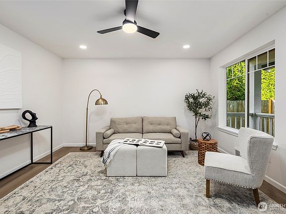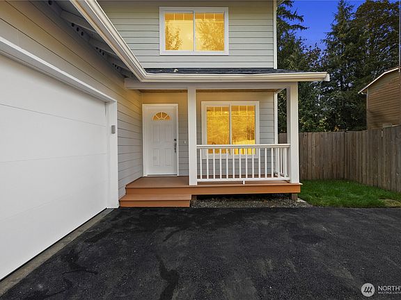 Secluded 2-story charmer in the heart of Granite Falls, embraced by mountains & a river flowing thru the community. Arrive to plentiful parking and step into a bright living room that opens to an expansive Kitchen & Dining area. The kitchen shines w/ new quartz countertops, shaker cabinetry, SS appliances, & dining beside sliding doors to a tranquil backyard & forested greenbelt. Main level features guest bath & laundry. Upstairs find generous bedrooms, incl. a dreamy Primary Retreat w/ ample closets & an elegant En-Suite boasting tiled floors, tiled shower, new vanities & designer lighting. plus a stylish tiled Main Bath. Fresh paint in/out, LVP floors throughout, DP windows, new hardware, cozy backyard, & 2-car garage complete this haven.