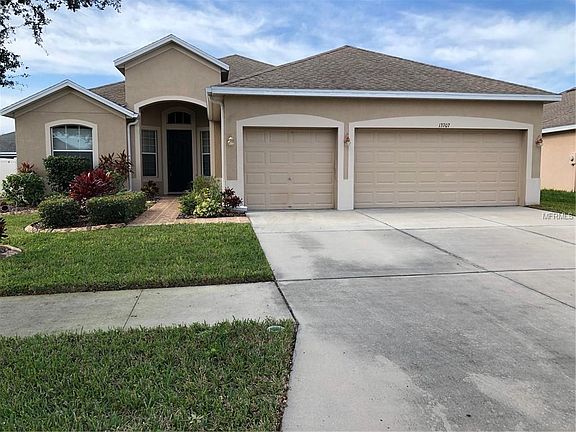 Beautiful and spacious 4-bedroom, 3-bathroom, 3-car garage Taylor Morrison home in peaceful South Fork. A custom tile walkway and landscaping greet you. Enter into the home with a formal living room on one side and formal dining room on the other and office w/double doors all with high grade laminate flooring and w/custom chair rail. Follow to the spacious family room w/sliders to rear lanai and over to the kitchen w/breakfast bar, granite countertops, stainless steel appliances, tile backsplash and closet pantry. Breakfast nook fits large table. Off the family room is the generously sized master bedroom with door to rear lanai. Master bath w/dual sinks, granite countertops, garden tub and separate shower. Check out the giant 13x5 master closet with lots of shelving and custom built-in dresser. This split-plan home features 3 other bedrooms 2 of which have walk-in closets and one which features custom wainscoting. Bath-2 has a Jack-n-Jill set up and dual sinks for busy mornings. Bath-3 features a door to rear Lanai. Nice sized laundry room with sink and newer LG washer/dryer. Home has newer paint, carpet, fixtures, blinds and laminate flooring. South Fork is centrally located and features community pool, tennis courts and playground and the HOA includes Basic Cable TV!