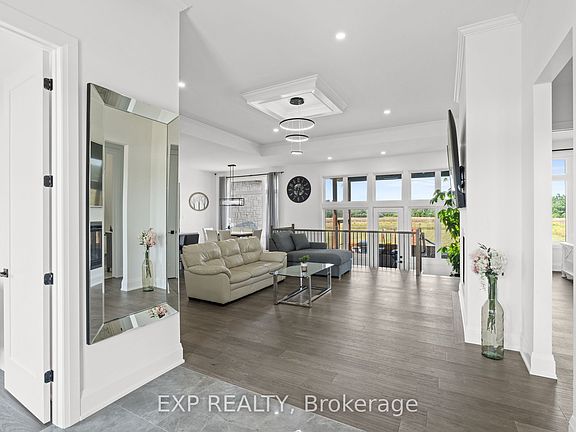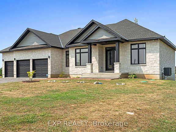 Welcome to this stunning all-stone 5-bedroom, 3-bathroom Energy Star-rated bungalow (2023), blending timeless style with modern comfort, set on a private 2-acre lot just minutes from historic Merrickville. With10ft ceilings on main level and 9ft on lower level. Step inside the beautifully tiled entry and you're greeted with a bright, open layout where the gorgeous chefs kitchen and great room are the heart of the home. Dream kitchen for any cook, custom tall cabinetry, quartz countertops, massive island & breakfast bar, a second sink, plus top-of-the-line stainless appliances. Upgrades include gorgeous light fixtures, beautiful white textured tile backsplash, pot filler tap above stove, and pantry. The great room's 11 ft ceilings, huge windows, stunning hardwood floors, and cozy fireplace create a warm, welcoming space for living and entertaining. The spacious primary suite a walk-in closet and a spa-inspired 5-piece ensuite with a soaker tub and glass shower. Two more bedrooms, plus a flexible room perfect for a home office or den, offer plenty of options for family or guests. A main floor laundry room and a mud room for more functionality. Professionally finished lower level with over 2,000 sq ft, Featuring large family room with fireplace, full kitchen/bar, perfect for hosting gatherings or accommodating extended family. Two additional large bedrooms, full bathroom and a huge rec room complete. Outdoors, unwind in the huge screened-in Muskoka room while taking in beautiful country views, or enjoy the open yard, future pool, gardens, play, or simply soaking in the peace and quiet. Massive 3-car garage tons room for vehicles, storage, etc. Boasting over 4,000 square feet of finished living space, this home offers the perfect blend of quality, comfort, and privacy, just a minutes from the historic rideau river and town of Merrickville with artists, restaurants, shops, dining, waterfall and rideau boat locks. This is truly peaceful paradise, you don't want too miss.