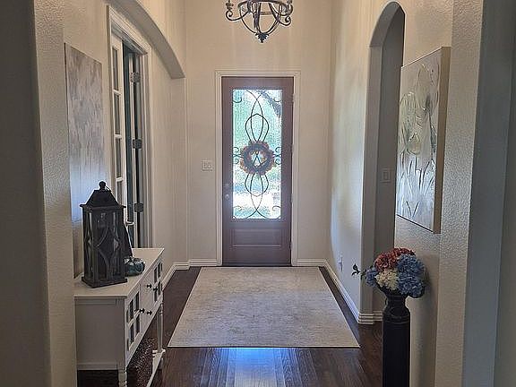 Hard to find single story with 3 car tandem garage. Updated Kitchen and baths are perfectly maintained. Solid oak hardwood floors. Updated kitchen includes gas cooktop, Jenn Air and KitchenAid appliances, trash pull-out cabinet next to sink, updated bathrooms include free standing tub and frameless glass shower in primary, large walk-in closet in primary, new high quality carpet in 2022, plantation shutters on all windows, covered front patio and extended rear patio with pergola, office off front entry, fully landscaped yard with room for a pool if you desire. Exterior accent lighting. Laundry with room for second refrigerator. EV charger, Hot water heater 2024. In Miramonte master planned community with beautiful community pool, ponds, parks and wooded trails. Prosper ISD