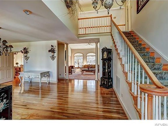 Exquisite custom designed estate home in the Woodlake Community on a large mature wooded lot. This open concept living floor plan boasts 5 bedrooms and 5.1 bathrooms w/first floor master suite. The entry way opens to a grand two story foyer and living room with palladium floor to ceiling windows including in the bright and light dining room. An updated kitchen w/ stainless appliances, beautiful granite counters is open to a great-room with fireplace, bright and light eat in area. There is a first floor office w/ built-ins off the entry way. Also on the first floor is a full bath and another one-half bathroom. The second floor has three additional bedrooms one with ensuite, two share a hall bath. A large bonus room is also on the second floor. The walk-out basement has a gas log fireplace w/full kitchen, full bathroom that could be a great in-law/aupair suite. Fabulous room for gym, gaming or bedroom. An additional room currently being used as an office could be made into gym/ bedroom. Beautiful deck off the first floor with large gazebo area overlooking private wooded lot and seasonal water views. Oversized two car garage with side-house entry.