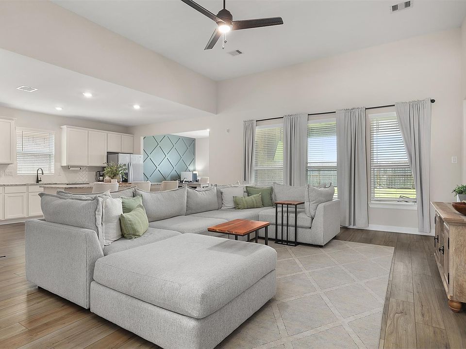 Fall in love with this stylish, move-in-ready home in the heart of Lago Mar, where everyday living feels like a vacation! Inside, you’ll find an open-concept layout with rich plank flooring, a bright living area, and a sleek kitchen featuring a granite island, white herringbone backsplash, and tons of storage! The flexible dining nook is perfect as a workspace or fun hangout spot, while the spacious primary suite boasts a bold accent wall, spa-like bath with soaking tub, double vanities, and two walk-in closets. Enjoy the amenities of Lago Mar, a vibrant community and dive into the 12-acre lagoon, perfect for soaking up the sun on white sandy beaches. Relax in resort-style pools, fitness centers, and walking trails for that perfect day! Exciting nearby additions like a new H-E-B, restaurants, shopping, and a new Dickinson ISD school underway, it's not just buying a home—you’re joining into a whole lifestyle! This home has it all—snag your showing today & make Lago Mar your new reality!