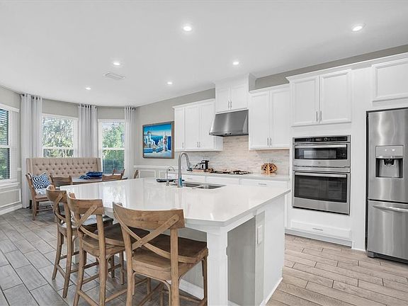 Welcome to 13709 Stansil Avenue, a stunning Taylor Morrison Barbados model nestled in the prestigious and vibrant community of Starkey Ranch. Designed for elegance, comfort, and flexibility, this expansive two-story home offers over 3,400 square feet of beautifully appointed living space backing to Starkey Wilderness Preserve on a coveted homesite with 5 bedrooms, 4 baths, and a dedicated office that the homeowners thoughtfully customized with French doors to create a private and functional workspace. Every inch of this home exudes thoughtful craftsmanship and timeless appeal. From the moment you arrive, the curb appeal is impressive, featuring a stately Craftsman elevation with an upper-level balcony, manicured landscaping, and an inviting front entry. Step inside and you’ll be welcomed by soaring ceilings, abundant natural light, and a perfect balance of open-concept flow and defined spaces. The homeowners reimagined the floor plan to provide both elegance and versatility, creating a separate office off the foyer adjacent to the formal dining room for those who work or study from home without sacrificing entertaining space. The heart of the home is the gourmet kitchen, designed for both culinary inspiration and gathering. It features stone counters, upgraded cabinetry, a gas cooktop, a built-in wall oven, a microwave, and stainless steel appliances. The large center island offers generous seating and workspace, complemented by a stylish backsplash and designer lighting. The open floor plan seamlessly connects to the great room, where high ceilings, recessed lighting, and views of the screened lanai, endless nature, and backyard create a warm and inviting atmosphere. The main floor also features a full bedroom and bath that functions perfectly as a guest or in-law suite, offering comfort and privacy for visitors. Upstairs, a spacious bonus room provides endless possibilities, from a media lounge or playroom to a secondary living space for relaxing or entertaining. The primary suite is a peaceful retreat with abundant natural light, and a spa-inspired bath that includes dual vanities, a soaking tub, and an oversized walk-in shower. Two walk-in closets have been designed for maximum organization and space. Secondary bedrooms are generously sized, two with a convenient Jack-and-Jill bath and an additional full bath next to the fourth upper bedroom, ensuring comfort for everyone. Step outside to your private backyard oasis, where you can unwind under the extended screened covered lanai or create your dream outdoor space perfect for a pool, garden, or summer kitchen. This home includes desirable upgrades such as elegant flooring, upgraded baseboards, stylish fixtures, built-in entertainment walls, and neutral designer paint tones throughout. The attached two-car garage offers ample space for vehicles, storage, and hobbies. Smart features such as UV lights on both ACs, reclaimed water, energy-efficient windows, hurricane shutters, whole-home saltless water filtration and softening system, water filter at the kitchen sink, and washer and dryer included. Residents enjoy multiple pools, playgrounds, dog parks, 22 miles of walking and biking trails, a K-8 school, library, community gardens, sports fields, and year-round events hosted by a dedicated activities director. Minutes from shopping, dining, medical facilities, and the Suncoast Parkway, Tampa International Airport and the beautiful Gulf Coast beaches. bit.ly/13709Stansil