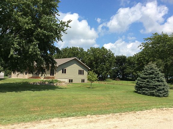ACREAGE FOR SALE: Beautiful acreage with large newer ranch home. Home is 3,100 sq ft. with 2,600 sq ft finished and 3 basement bedrooms around 500 sq ft that are partially finished. The bedrooms only need flooring and trim work. On main floor is a master bedroom with spacious master bath and walk in closet, a second bedroom, large open kitchen with custom hardwood cabinets and walk in pantry, living room, office, laundry room, and large mudroom or mother-in-law apartment. Basement has large finished family room, full bath, storage room with built in shelving, mechanical room and 3 large partially finished bedrooms. There is a 2 stall attached garage with floor heat. The house has floor heat in the garage and basement, central vac, central air, dual heat system, crank out windows and 3' doors. The acreage has a new shed 36'x120' older shed 45'x112', a top dry grain bin approximately 10,000 bu. storage, and other small shed.