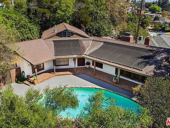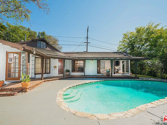 This classic Mid Century Ranch style home is finally coming to market! Sitting high above the street, the magnificent architecture envelops the hilltop swimming pool. Absolute privacy with security fencing surrounding the .28 acre property. Views from every window and french doors that open the house up to the pool. An entertainers delight! Many original features and some upgrades including a finished garage with a bonus room for work or home school. The wood BBQ deck is the perfect place for a pool party and the 6 foot fireplace inside is great for cozy evenings. Trees and bird sounds abound making it feel like the perfect get away on this mini estate. Text/Call LA1