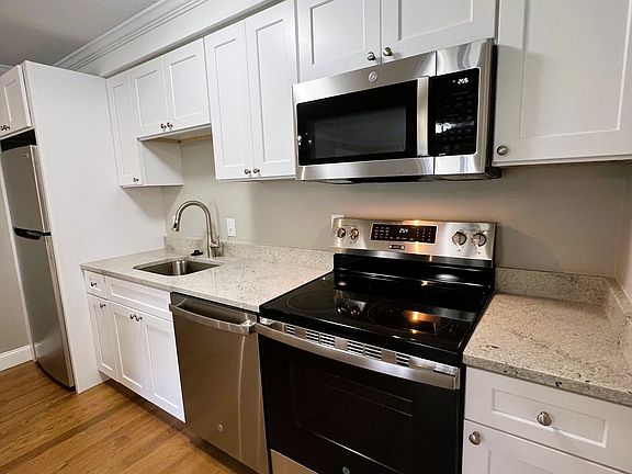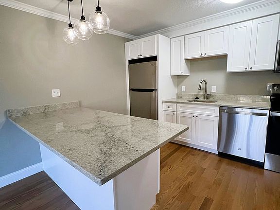 Welcome to Apartment 28 at East Manor, a quiet and sprawling 55+ community located at 1371 Mendon Road, Woonsocket, RI. Set back from the main road, East Manor is conveniently located minutes from highways, dining, and retail. This 2nd floor one-bedroom apartment features a modern kitchen with stainless steel appliances including a refrigerator, stove, microwave, dishwasher, and garbage disposal. You'll love the granite countertops and large eat-in island with pendant lighting. Inside you'll find an open floor plan with hardwood floors, crown molding, air-conditioning, a massive walk-in closet and a private patio. Our buildings offer keypad entry, a security entrance system, on-site coin operated laundry, reserved covered parking, and free storage units in each building. Heat, hot water, water and sewer are all included in the rent. We are pet friendly (A one-time nonrefundable pet fee of $100 and $25.00 pet rent per pet with a maximum of 2 pets) Real Estate Property Management Inc. provides its own dedicated maintenance service team with 24/7 emergency maintenance on-call service, trash removal, and manicured landscaping. Hurry, this gem won't last long.