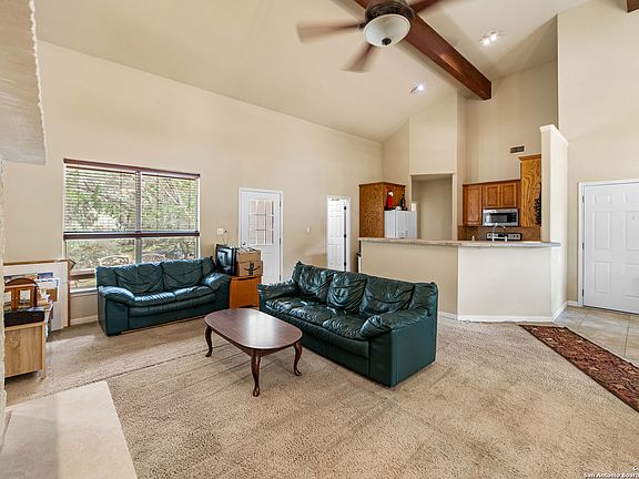 HOME PRICED LOW FOR THE NEIGHBORHOOD BUT NEEDS SOME COSMETIC WORK SUCH AS FLOOR COVERING, TRIM BOARDS AND POSSIBLE PAINT. THE SELLER WILL GIVE UP TO 10K FOR CLOSING COST OR FLOORING ALLOWANCE. BEAUTIFUL STONE EXTERIOR WITH LARGE TREES ADD TO THE CURB APPEAL OF THIS BEAUTIFUL HOME. LARGE LIVING AREA WITH HIGH CATHERDERAL CEILINGS, FLOOR TO CEILING STONE GAS FIREPLACE (NEVER CONNECTED TO PROPANE) IS THE CENTERPIECE OF THE LIVING AREA. NICE SIZE DINING AREA AT THE ENTRANCE DIVIDED BY A WAIST HIGH STONE DIVIDER WITH COUNTERTOP AND IS BIG ENOUGH FOR A TABLE AND CHINA CABINET. LARGE KITCHEN WITH LOTS OF CABINETS AND STAINLEES STEEL APPLIANCE BUT SOME NEED REPLACED. BIG MASTER BEDROOM WITH LUXURY BATH FEATURING JACUZZI TUB, SHOWER, BIG DOUBLE VANITY AND LARGE CLOSET. SECONDARY BEDROOMS ARE BIG AND ALSO FEATURE HIGH CEILINGS AND AMPLE STORAGE AND A LARGE LAUNDRY ROOM WITH STORAGE AREA. BIG BACKYARD WITH LOTS OF TREEES AND PATIO IS MADE FOR BARBQUING AND LARGE GATHERINGS. WELL AND SEPTIC ON THE PROPERTY SO UTITLITY BILLS ARE LESS. LARGE 2 CAR GARAGE AND MORE. 20 MINUTES TO HWY 281 AND 1604, 5 MINUTES TO SCHOOLS, SHOPPING AND EATING. QUIET LIVING CLOSE TO EVERYTHING.