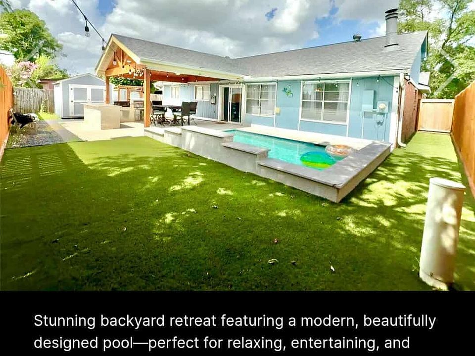Spacious Living RoomPrivate BathroomTwo-Car GarageFenced BackyardCovered PatioModern ConvenienceAmple SpaceSecure, pool with water heater, ParkingPrivacyConvenient Location