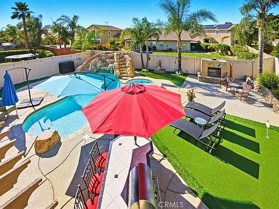 Step into your resort-style backyard, complete with a private pool & spa, waterslide, and waterfall—ideal for entertaining guests or enjoying peaceful family time. The artificial lawn ensures low maintenance, while the Alumawood patio cover adds shade and style for outdoor dining or relaxing. Fire up the built-in grill next to the outdoor fireplace or enjoy tranquil views from your private upstairs balcony, or practice putting on your own putting green.