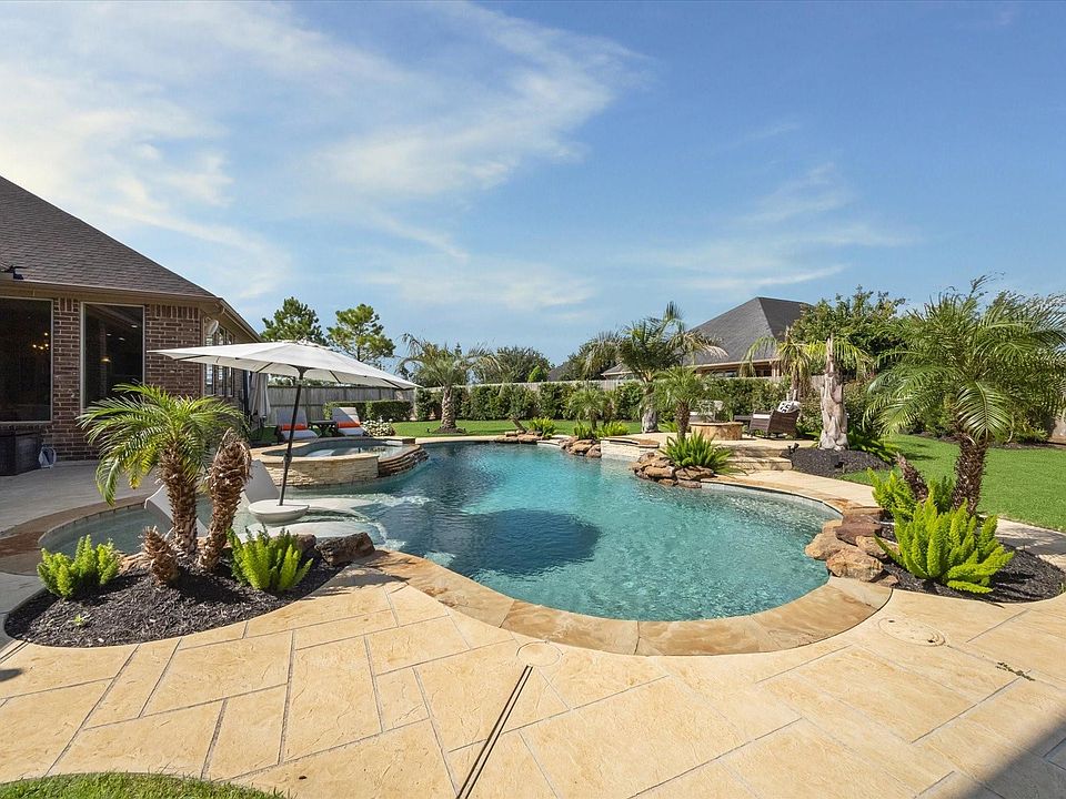 Stunning 1.5-story Trendmaker home tucked away on a quiet cul-de-sac in the exclusive, gated Reserve of Clear Lake. Designed with elegance and comfort in mind, this home showcases a spacious open layout, rich 40'' cabinetry, GE Monogram appliances, and luxurious finishes throughout. The flexible floorplan includes a serene primary suite with a lavish two-sided walk-in closet, while both secondary bedrooms offer private ensuite baths. An air-conditioned home gym adds everyday convenience. Step into a resort-style backyard oasis featuring a self-cleaning Laguna-style pool with a deep end, tanning ledge, hot tub, fountain, fire pit, outdoor kitchen, and lush landscaping. A covered patio and premium surround sound—indoors and out—set the stage for unforgettable entertaining. Additional upgrades include a 22kW Generac generator and a Lavanda 2000 scent system integrated into the A/C. A rare blend of luxury, lifestyle, and location—this home truly has it all.