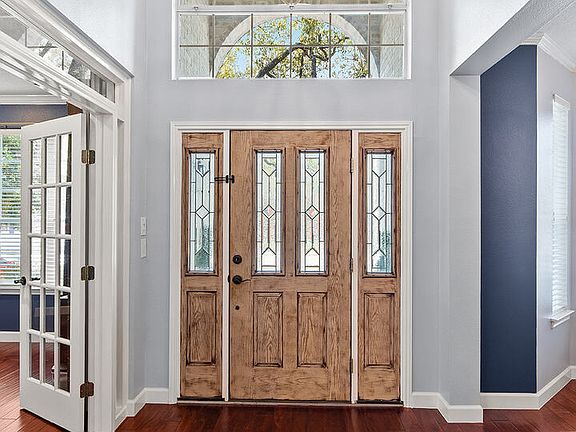 This welcoming two-story home sits on a corner lot and on a cul-de-sac. Inside, there's a spacious office, a separate dining room, and a cozy living room centered around a fireplace. The kitchen offers a casual dining area, a large island, gas cooking, and a convenient wet bar or coffee station. You'll also find a walk-in pantry and a laundry room with a utility sink for extra functionality. There's a bedroom and full bath downstairs, perfect for guests. Upstairs, an additional living area with built-in shelves provides even more flexible space, along with four more bedrooms. The primary suite features a sitting area, two walk-in closets, and a large bathroom with a separate tub and shower. The backyard is a real highlight - designed for easy living and entertaining, with a covered porch, a heated in-ground pool, and a hot tub. The landscaping is thoughtfully done, with turf installed to keep maintenance simple.