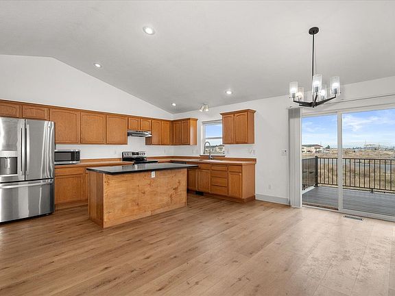 Welcome to this beautifully maintained one-level home in the desirable Aspen Grove Addition in Airway Heights! Located just minutes from Fairchild Air Force Base and only 20 minutes to downtown Spokane, this 3-bedroom, 2-bath home offers both comfort and convenience in a fast-growing community. Step inside to a spacious, open-concept floor plan with soaring vaulted ceilings and abundant natural light. The kitchen features generous cabinet space, perfect for storage, and flows seamlessly into the informal dining area, ideal for everyday meals or entertaining, leading out to your private backyard deck. The primary suite offers a peaceful retreat, a private bathroom, and a walk-in shower. Additional highlights include main-floor laundry with washer/dryer hookups, gas forced air heating, central A/C, and an attached 2-car garage with no homes behind you.