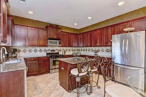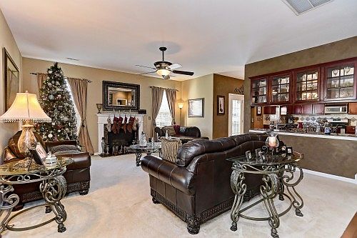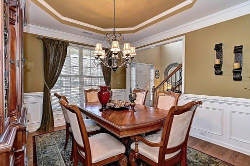 A covered front porch, brick accented driveway and keystone landscaping give this home great curb appeal. Stunning one-owner home features elegant formals, great room with gas log fireplace, charming sunroom, tiled gourmet kitchen with custom butlers pantry and amazing master retreat. Youll love the flexibility of a large media room or 5th bedroom. Relax outdoors on the extended deck overlooking the nice level fenced yard. Walk over to the community amenity center with Jr. Olympic pool, playground and serene lake with walking trails. Great location minutes from highway access and neighborhood schools. Dramatic 2-story foyer boasts beautiful hardwood floors, crown molding and an ornate pendant chandelier. The hardwood floors continue through the lovely formal dining room with an octagon trey ceiling, crown, chair rail & picture frame moldings and designer chandelier. Crown molding accents the spacious formal living room. Eye-catching split staircase to the upper level features wrought iron balusters. Inviting great room has a cozy gas log fireplace and lighted ceiling fan. Charming sunroom with French doors makes a great home office or playroom. A neat butlers pantry with glass front display cabinets and granite countertop separates the great room and tiled kitchen area. Any chef will love the raised panel cherry cabinets, granite countertops, custom tile backsplash and stainless steel appliances. Center prep island offers bar seating for casual meals. The main level includes a pretty powder room with pedestal sink and large laundry room. A deep trey ceiling with lighted ceiling fan and sitting room highlight the huge master bedroom. Luxury bath features a vaulted ceiling, tile flooring, double vanity with knee-hole dressing area, garden tub, separate tiled shower, private water closet and spacious walk-in closet. Three additional bedrooms all have lighted ceiling fans and roomy closets. The guest bath has tile flooring, cabinet style vanity and tub/shower with linen storage located in the hallway. Invite friends over for movie night in the media room with closet, and recessed lighting. A custom deck overlooks the nice level yard with black aluminum fencing. Walk out the back gate to the community pool, playground and walking trails.