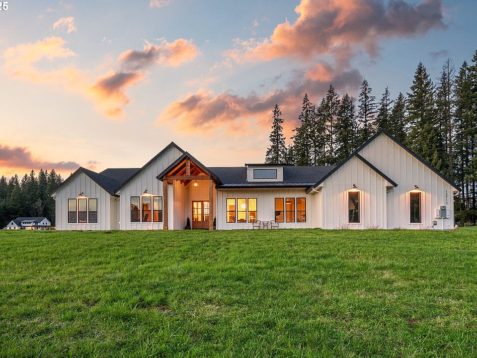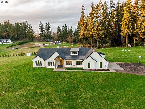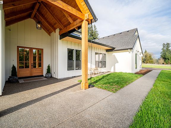 Discover the perfect blend of modern comfort and rustic charm in this breathtaking 2023 farm-style home. Designed for both elegance and functionality, it features soaring vaulted ceilings, an open floor plan, and engineered hardwood flooring bathed in natural light. The spacious great room is a cozy retreat with a wood-burning fireplace, built-in cabinets, and floating shelves. The chef’s kitchen is a dream, boasting a large island, quartz countertops, stainless steel appliances, a built-in refrigerator, and a walk-in pantry. The luxurious vaulted primary suite offers a jetted tub, a tiled shower, and an expansive walk-in closet. Premium amenities include central A/C, a central vacuum system, a fire sprinkler system, and a built-in sound system. Step outside to the oversized covered patio—perfect for year-round entertaining. Ideally located minutes from shopping, freeways, parks, hiking trails, and camping, this home is a rare gem that seamlessly blends tranquility and convenience. Don’t miss out!