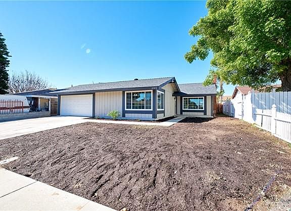 Remodeled single story home in Moreno Valley. White kitchen cabinets with granite countertops. Fireplace in living room. Luxury vinyl floors and carpet in bedrooms. Indoor laundry. Attached 2 car garage. Spacious backyard for entertaining. Lovely neighborhood. Quick move in.