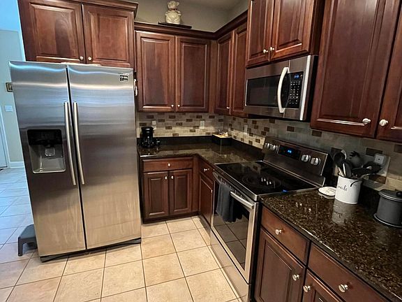 The home features an eat-in kitchen as well as a formal dining room, complete with granite counters, upgraded backsplash, stainless steel appliances, and plenty of counter space for cooking and entertaining. Thoughtful touches like well-crafted chair rails elevate the overall elegance of the home.