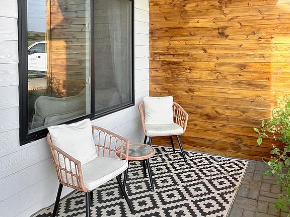 The spacious kitchen is a true showstopper, boasting sleek concrete countertops and ample cabinetry—perfect for entertaining or daily living. The open flow connects seamlessly to the dining and living areas, creating a warm and inviting atmosphere.