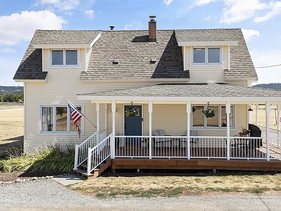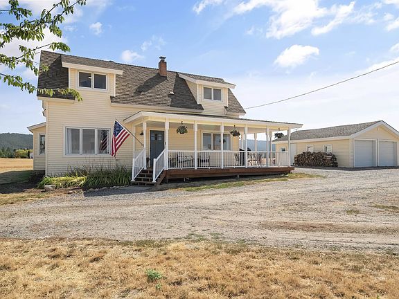 Charming farmhouse with breathtaking views, originally built in 1898 and fully updated in last few years throughout! This home offers 2,500 square feet of living space featuring 4 bedrooms and 2 ½ baths with main floor laundry. The kitchen has been completely renovated, boasting quartz countertops, new cabinets, and updated appliances and fixtures. Both bathrooms on the main floor are newly remodeled with quality finishes. Enjoy stunning views in every direction, showcasing Mt Spokane plus the beautiful surrounding foothills. The country-style wraparound porch is perfect for watching evening sunsets and seeing the abundant wildlife in the area. The living area features a new wood-burning fireplace, and the home is equipped with a forced-air electric heat furnace, as we central air conditioning. New flooring, interior paint throughout and all the rooms and closets are spacious~ the property includes a 30' x 40' machine shop with 20' ceiling height, perfect for toys or RV Storage, plus a detached 2 car garage!